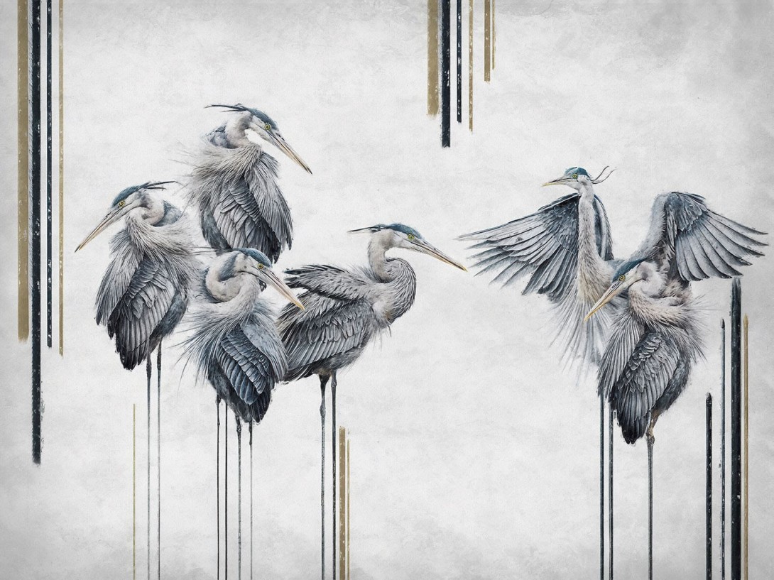 Mural Wallcraft 2025 Livia 980 31 2402 przedstawia kompozycję majestatycznych czapli utrzymanych w stonowanej, chłodnej palecie barw. Detalicznie opracowane pióra i subtelne cieniowanie nadają motywowi trójwymiarowości, a wertykalne linie w tle podkreślają elegancję oraz smukłość sylwetek. Wzór harmonijnie łączy minimalizm z artystycznym wyrazem, tworząc we wnętrzu atmosferę spokoju i wysublimowanego stylu. Idealnie współgra z aksamitnymi tkaninami, elementami złota oraz drewnem w ciemnych odcieniach. Mural Wallcraft 980 31 2402 2025 Livia stanowi wyrazisty, a jednocześnie subtelny akcent dekoracyjny inspirowany naturą.