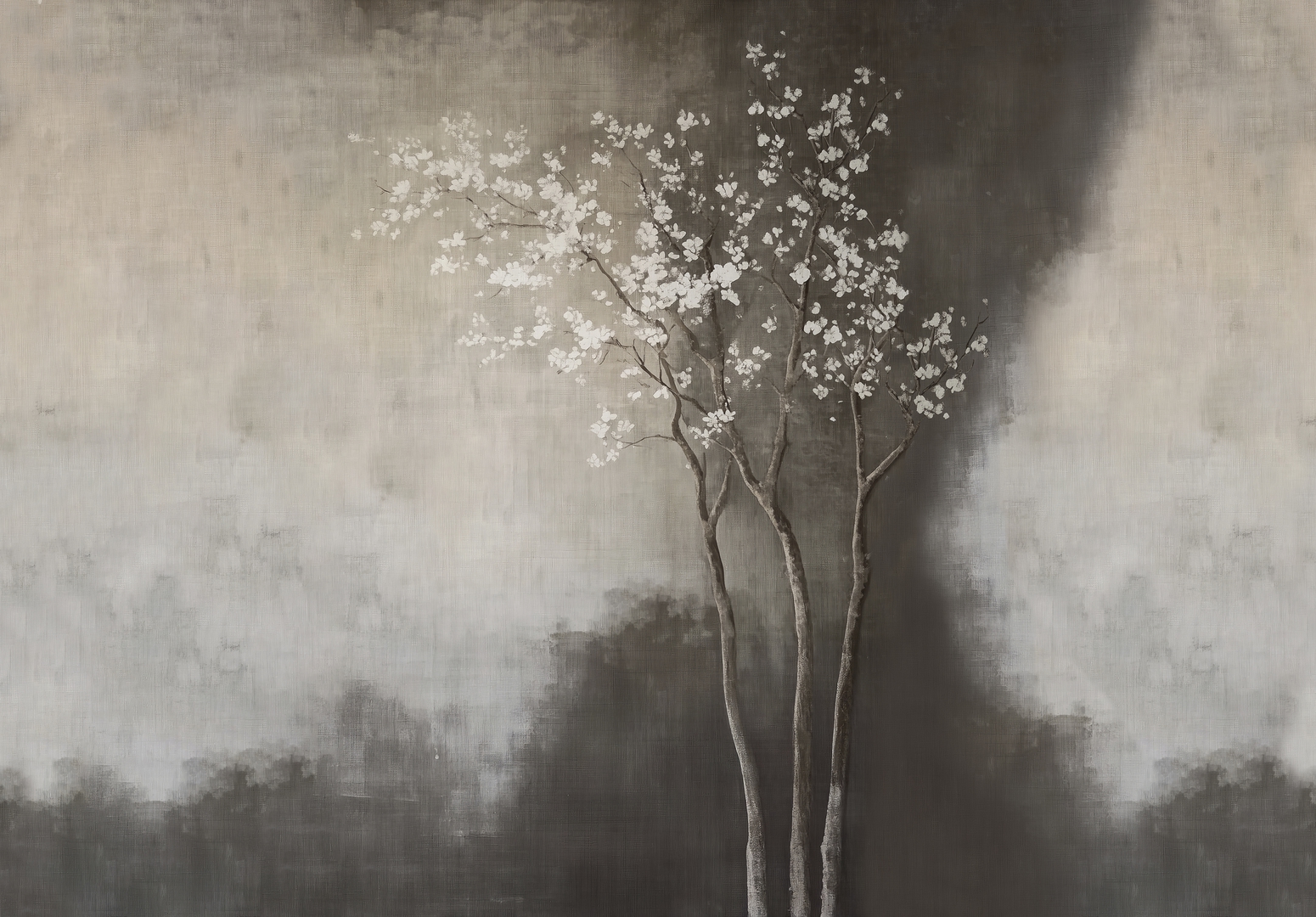 Wall&decò WDWS2602 Contemporary 2026 White Spring - mural w drzewo na zamglonym tle