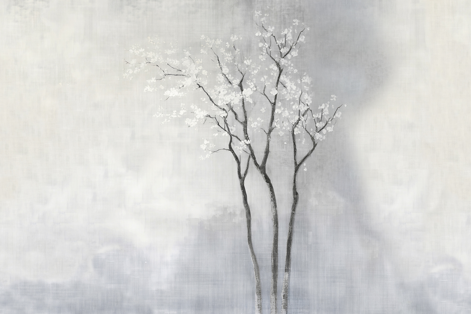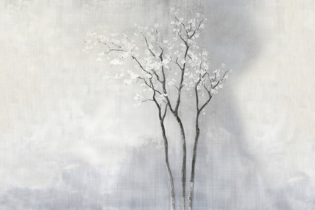 Wall&decò WDWS2601 Contemporary 2026 White Spring - mural w drzewo na zamglonym tle
