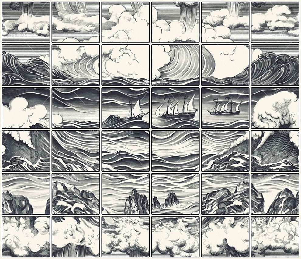 Mural Wallpepper Riccardo Capuzzo Sea Majolica RC-05-A to eteryczna dekoracja, która wnosi do wnętrza atmosferę tajemniczości i niezwykłej siły natury. Przedstawia wzburzone morze - zaprezentowane fale przywołują na myśl słynne dzieło "Wielka fala w Kanagawie", a podzielona listwami kompozycja sprawia, że całość ma niesztampowy charakter. Klimat, jaki kreuje w pomieszczeniach, to harmonijne połączenie dzikiej potęgi oceanu z elegancją i artystyczną nutą. Mural Wallpepper Riccardo Capuzzo Sea Majolica RC-05-A doskonale komponuje się z meblami w neutralnych kolorach, takich jak biel, szarość czy naturalne drewno. Stylizowane dodatki, jak np. ceramika inspirowana morzem, ręcznie tkane dywany czy dekoracyjne poduszki z motywami fal, podkreślą jego wyjątkowy charakter. Idealnie wpasowuje się w różnorodne style wnętrzarskie, takie jak nowoczesny minimalizm, eklektyzm czy wabi-sabi, dodając im głębi i oryginalności. Dzięki swojej unikalnej estetyce mural ten stanie się nie tylko dekoracją, ale i inspirującym elementem wnętrza, który zachwyca swoją artystyczną formą i niebanalnym wykończeniem.