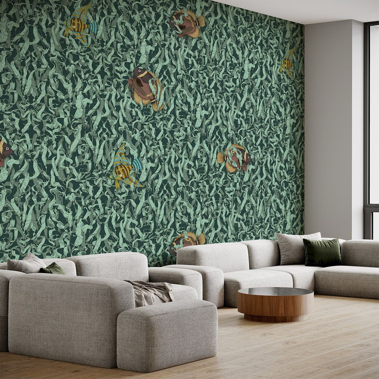 Mural Wallpepper Riccardo Capuzzo Seaweed RC-07-A to eteryczna i kojąca dekoracja, która wnosi do wnętrza spokój i piękno podwodnego świata. Przedstawia morską roślinność i ryby, które wspólnie tworzą harmonijną kompozycję, która wprowadza do przestrzeni atmosferę morskiej głębi i subtelnego ruchu fal. Klimat, jaki kreuje w pomieszczeniach, to połączenie naturalnego piękna z delikatną dynamiką oceanicznego ekosystemu. Mural Wallpepper Riccardo Capuzzo Seaweed RC-07-A doskonale komponuje się z meblami wykonanymi z naturalnych materiałów - drewna i kamienia. Dekoracja wpisuje się w różnorodne style wnętrzarskie - każdemu miejscu doda lekkości i świeżości. Dzięki swojej wyrazistej estetyce mural stanie się nie tylko dodatkiem, ale i inspirującym elementem wnętrza, który zachwyca swoją naturalną elegancją. Wprowadza do przestrzeni niesamowity klimat podwodnej przygody i spokoju, stając się centralnym punktem każdego wnętrza i dodając mu wyjątkowego charakteru.