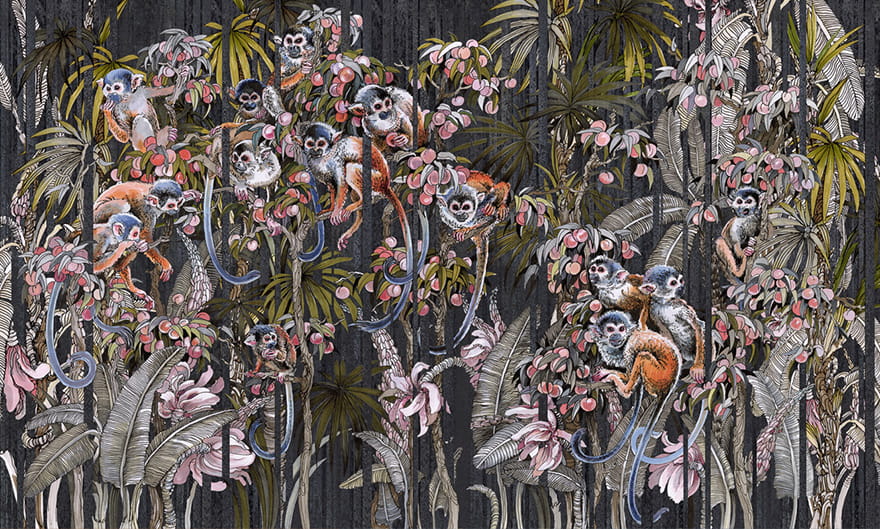 Mural Wonderwall Jumanji 35 0533 00 to dziwaczny wzór motywu dżungli z cudownymi małpkami i ptakami w przepięknych odcieniach. Subtelna, tłoczona powierzchnia podkreśla luksusowe, metaliczne elementy odważnego projektu. Mural Wonderwall Jumanji 35 0533 00 to niepowtarzalna dekoracja, która jest doskonałym rozwiązaniem do aranżacji w stylu eklektycznym, art-deco, nowoczesnym, klasycznym, a nawet minimalistycznym. Doskonale sprawdzi się w towarzystwie kolorowych roślin i ponadczasowych rozwiązań.