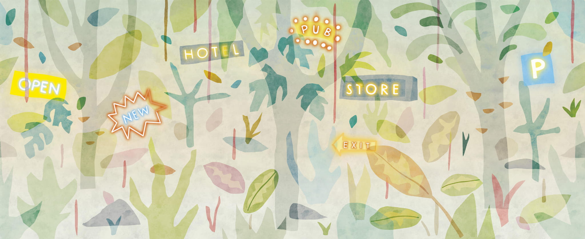 Yo2 CG1.01.3 CA City Garden - dziecięcy mural z liśćmi, drzewami i neonami
