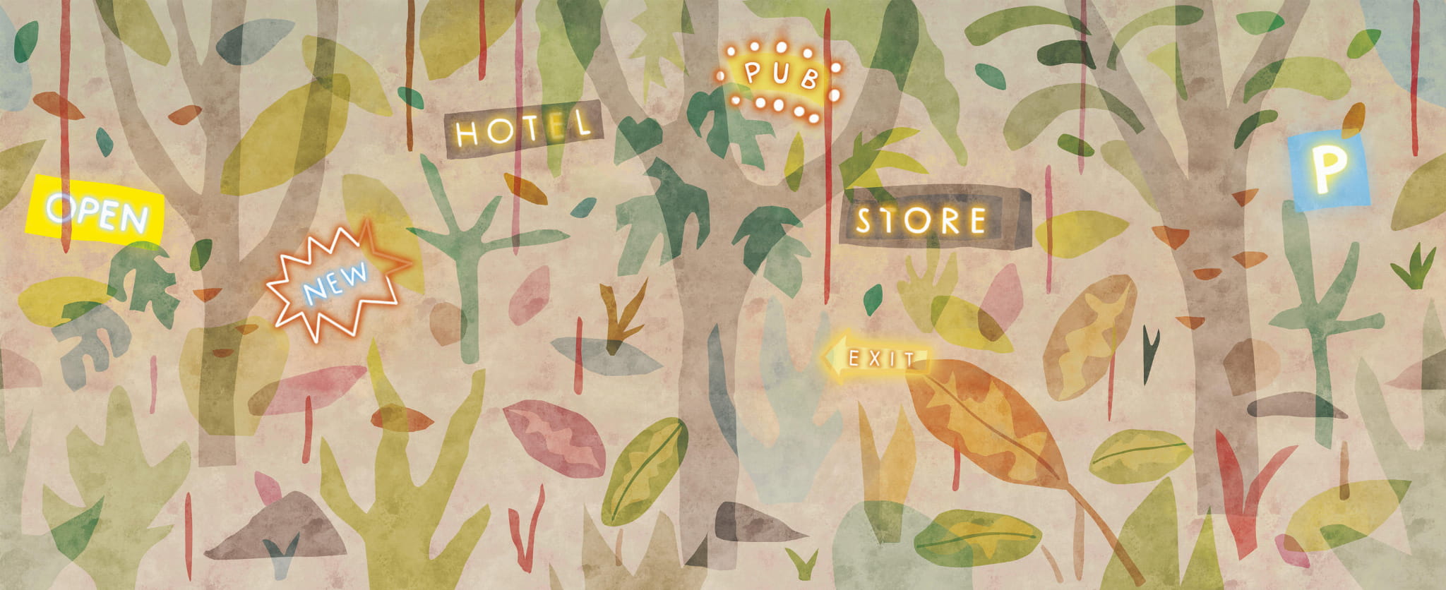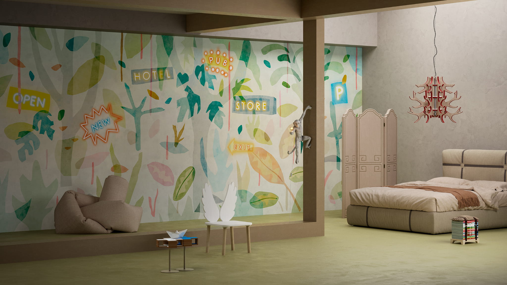 Yo2 CG1.01.3 CA City Garden - dziecięcy mural z liśćmi, drzewami i neonami