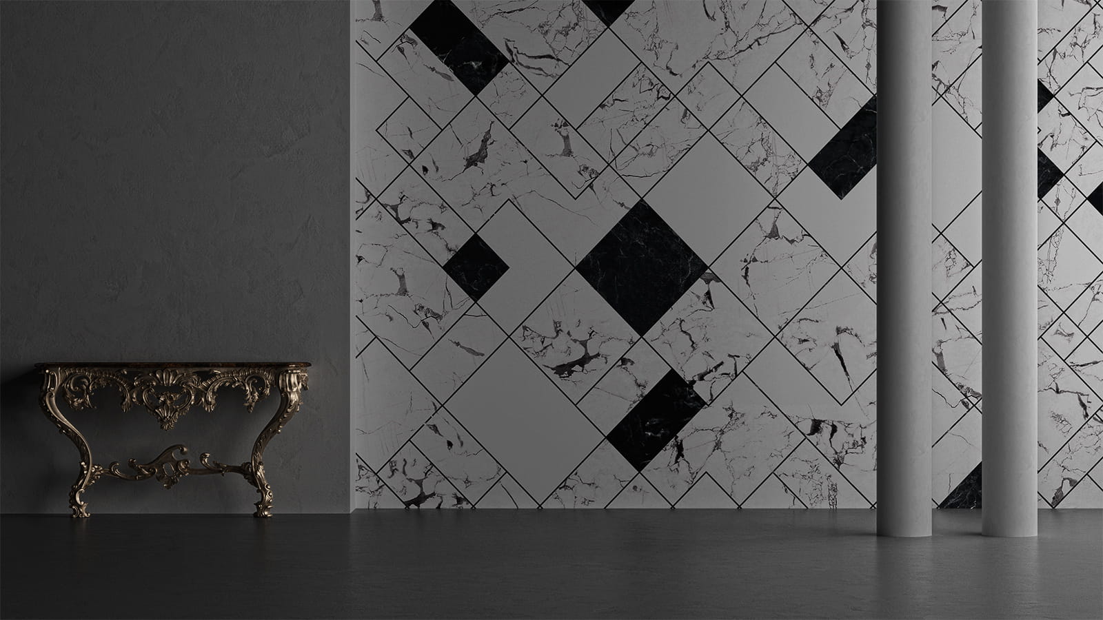 Yo2 CI1.03.1 FF Cast Icons - marmurowy mural z motywem prostokątów i kwadratów