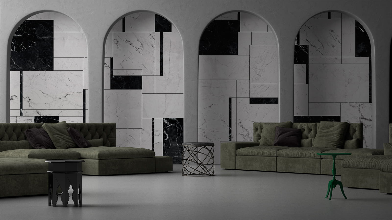Yo2 CI1.08.1 FF Cast Icons - marmurowy mural z motywem prostokątów i kwadratów
