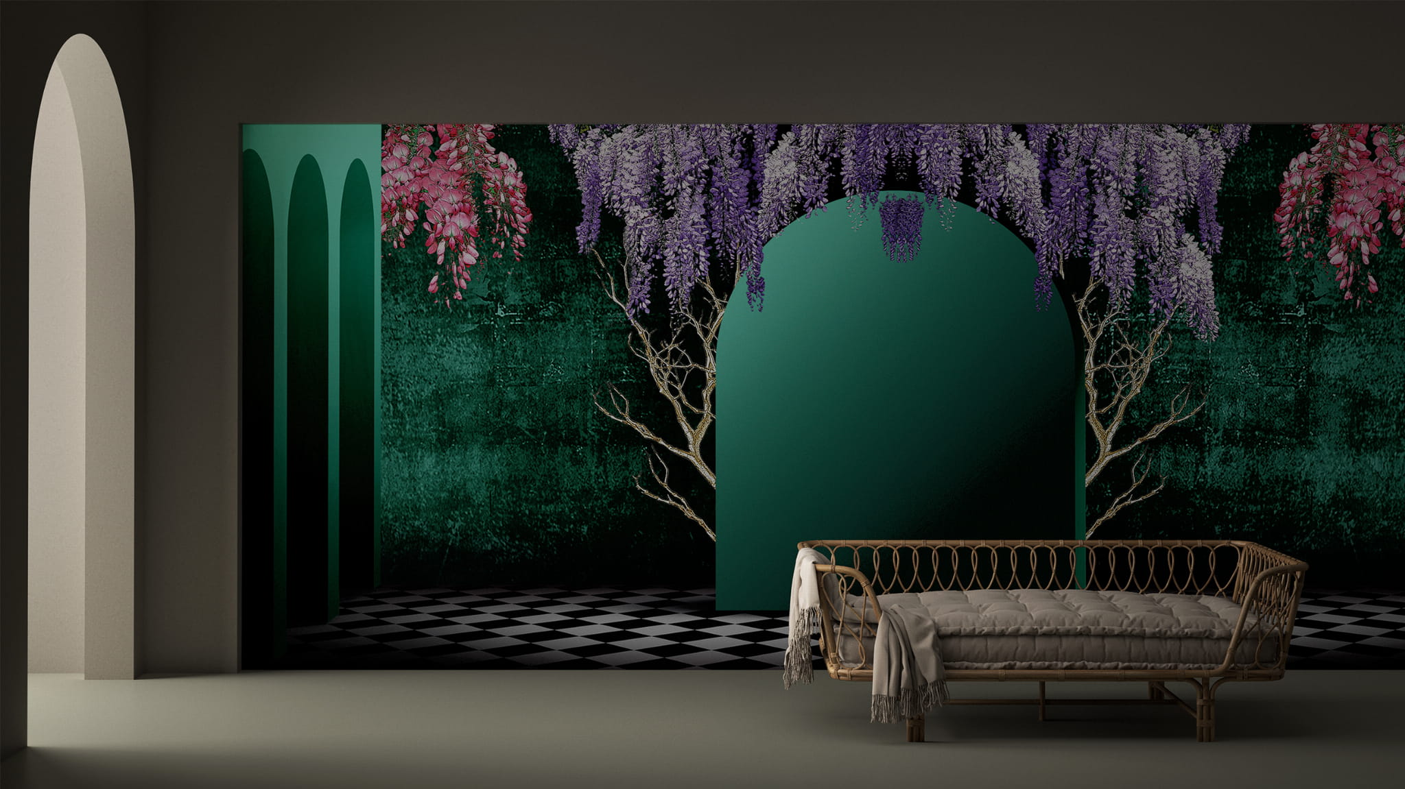 Mural Yo2 Glorious GL1.04.1 FF to marzenie o magicznej przestrzeni bez żadnych wizualnych granic i granic rzeczywistości. Eklektyczny design, który kokietuje nieoczekiwanymi przedmiotami i stylami, z odważną paletą kolorów. Wykorzystując architekturę, łuki i czarno-białe podłogi w stylu wiktoriańskiej szachownicy, aby uzyskać wizualną iluzję perspektywy głębokiej przestrzeni. Ta kraina fantazji, zwieńczona gigantycznymi papugami, ma ściany, które wyglądają jak sekwencja fantastycznych obrazów, takich jak te widziane we śnie. Rezultatem jest ten projekt, który jest pomysłowym sposobem na udekorowanie Twojego miejsca i nadanie wyjątkowego, estetycznego wyglądu Twojej przestrzeni. Ta kraina marzeń z pewnością rozjaśni Twoje codzienne życie. Mural Glorious GL1.04.1 FF został stworzony przez Ane Cvejic. Dekoracja doskonale odnajdzie się we wnętrzach klasycznych, art-deco, nowoczesnych, minimalistycznych, a nawet glamour. Model dostępny jest w ośmiu wersjach.