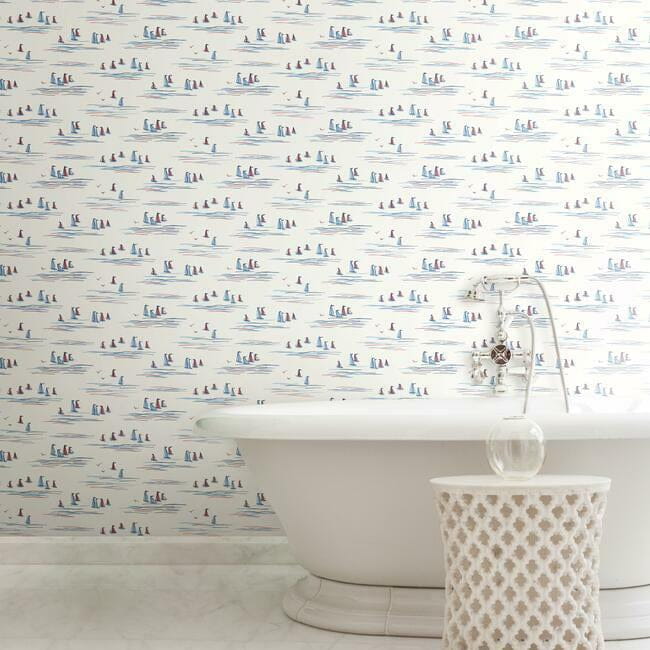 York CV4462 Water's Edge Resource Library Full Sails Blues - tapeta w żaglówki