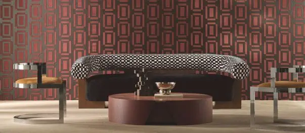 W kolekcji Casamance Odeon znajdują się wzory o zróżnicowanej formie: laserowo grawerowane łuki art deco na zamszowych powierzchniach, geometryczne układy tworzone z ręcznie układanych wstawek z abaki oraz jednolite tapety o gładkiej, głębokiej fakturze przypominającej zamsz. Część modeli wykorzystuje metaliczne podkłady podkreślające rytm kompozycji, inne opierają się na miękkiej, matowej teksturze.